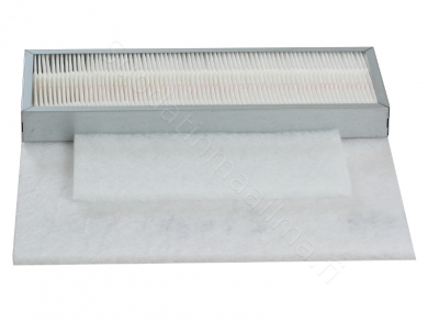 Kair Comfort 100 - 150 filterserie inkluderar ett finfilter av klass F7, två grovfilter av klass G3 och ett påsfilter av klass M5 (F5)